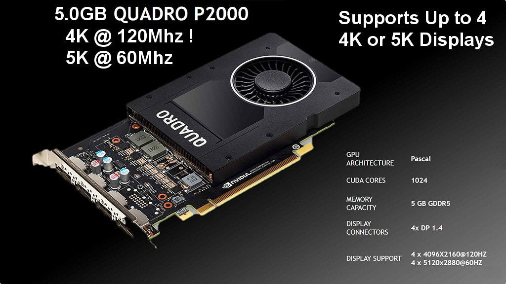 * 5.0GB Nvidia Quadro P2000 Pro Series 5K PCI Express videocard, 4x Displayport, Quad Display videocard