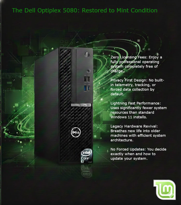 Fast 8 Core 2.90Ghz-4.80Ghz Intel-i7-10700 Dell Optiplex 5080 SFF PC 16GB 500GB SSD Linux Mint